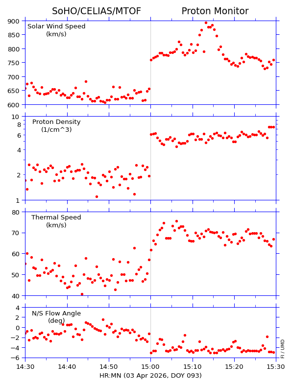 03 Apr 2026 (DOY 093 1500 UT) zone 4, ???Origin: 01 Apr 1723 UT, M3.5 x-ray flare in region 4404 with a 2B optical flare at N12W16, travel time 14 hours